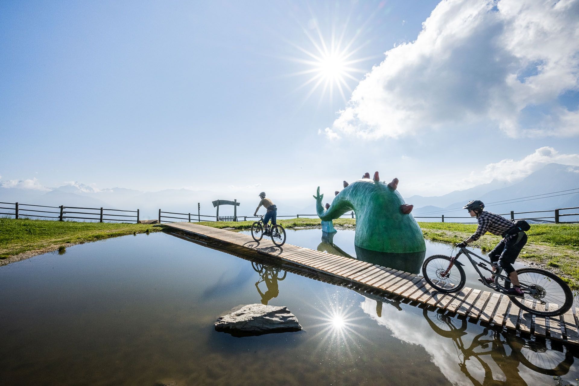 Kids Fun Camp mit Dirtboards, Grasskiern und Bikes, Sporttrampolin, Riesen-Luftkissen, Tubingpark. Dazu ein toller 3D-Bogenparcours für die ganze Familie, der ganz nebenbei auch noch allerlei Infos über die heimische Tierwelt verrät.